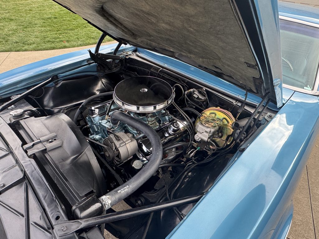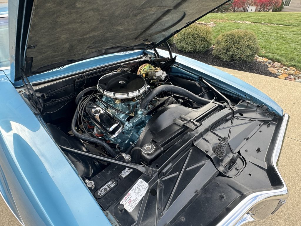 The engine compartment is nicely detailed and correct with its matching numbers 400ci V8 engine which carries the WZ stamping code and is rated at 325 hp! It has the correct 4 core radiator with correct fan shroud and clutch fan, factory chrome valve covers and power steering. It still retains its original factory chrome air cleaner and correct 4 barrel carburetor, GM hoses and correct tower clamps and factory spring type battery cables. There are also new upper control bushings. Everything in the engine compartment is nice and tidy.
