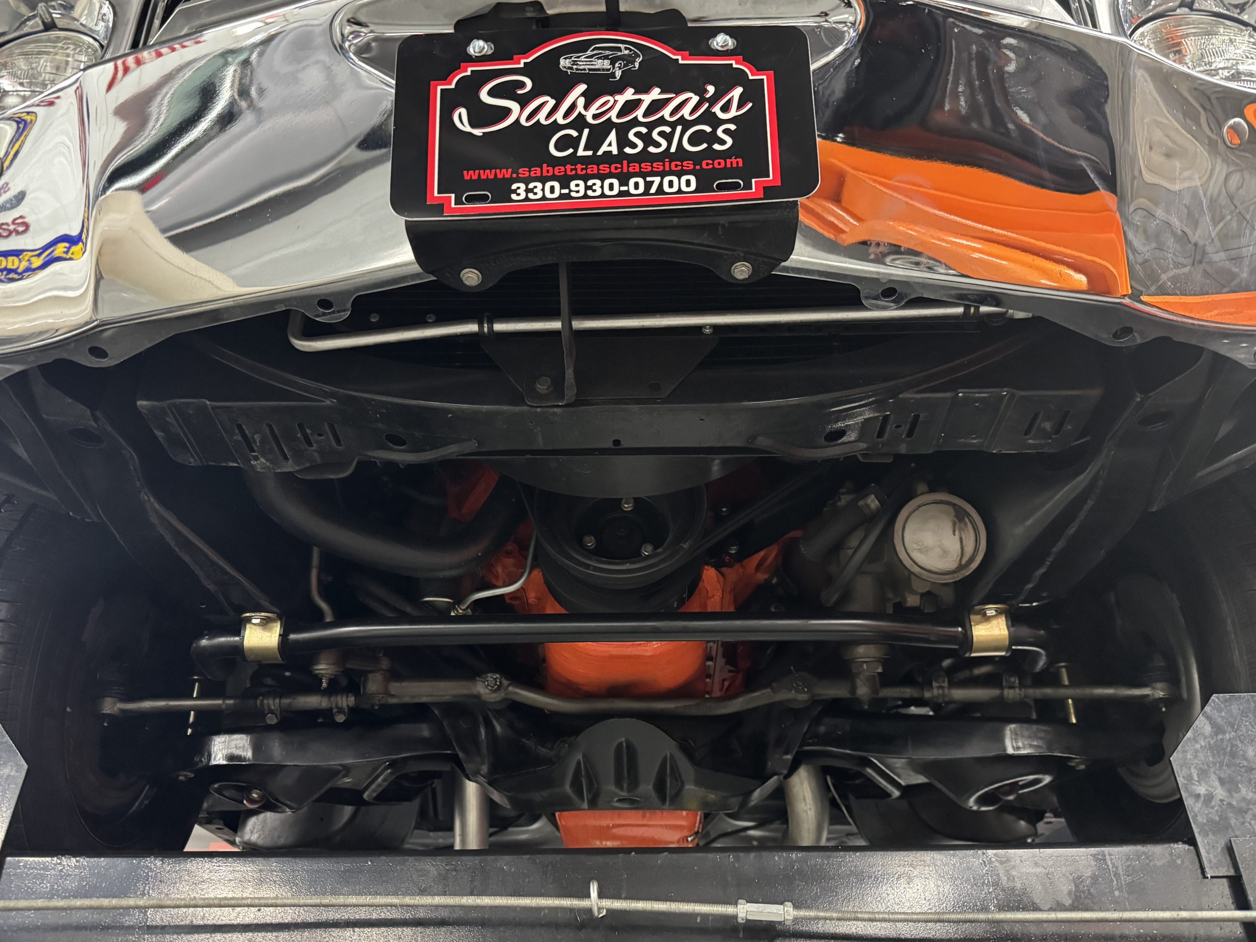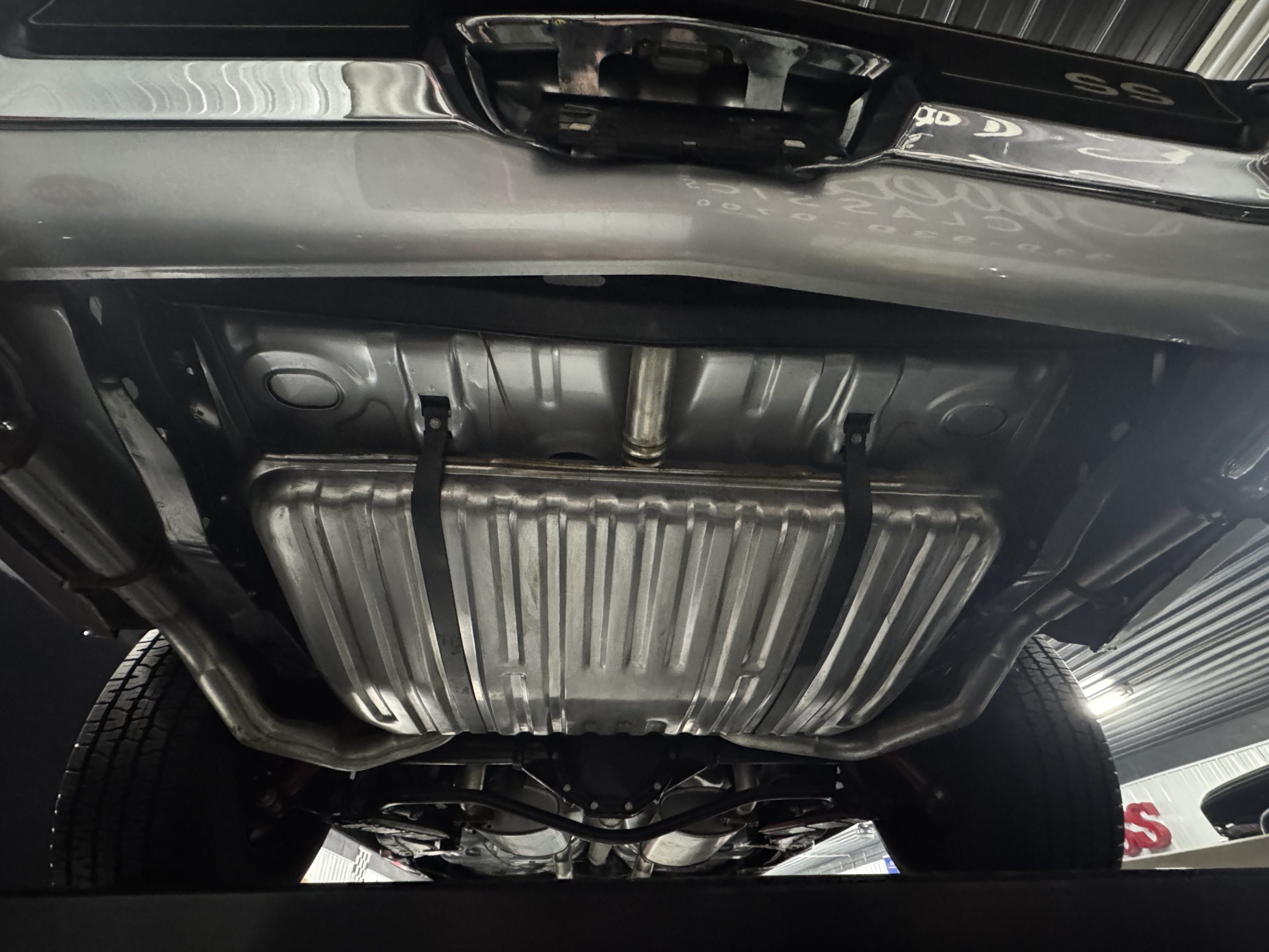 The undercarriage is as clean as the top side! The bottom of the engine is clean and the Muncie 4 speed manual transmission is clean as well. The original floors have been painted the same as the exterior color. There is a F-41 suspension which includes sway bars, boxed in control arms and front disc brakes. It has a dual exhaust system with factory style cowbell tips running out the back, new fuel tank with new straps and sending unit, 12-bolt posi rear end with 3:31 gears. The E-brake assembly looks good and working.