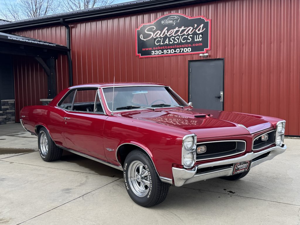 1966 Pontiac GTO PHS DOC, 389 CI, TRIPOWER, 4 SPEED! This is one clean 1966 GTO! Looking down both sides it is straight. It looks amazing in Dark Red Metallic. The paint has a smooth and glossy finish. The front and rear bumpers have been rechromed. It sits on a set of Cragar SS wheels…